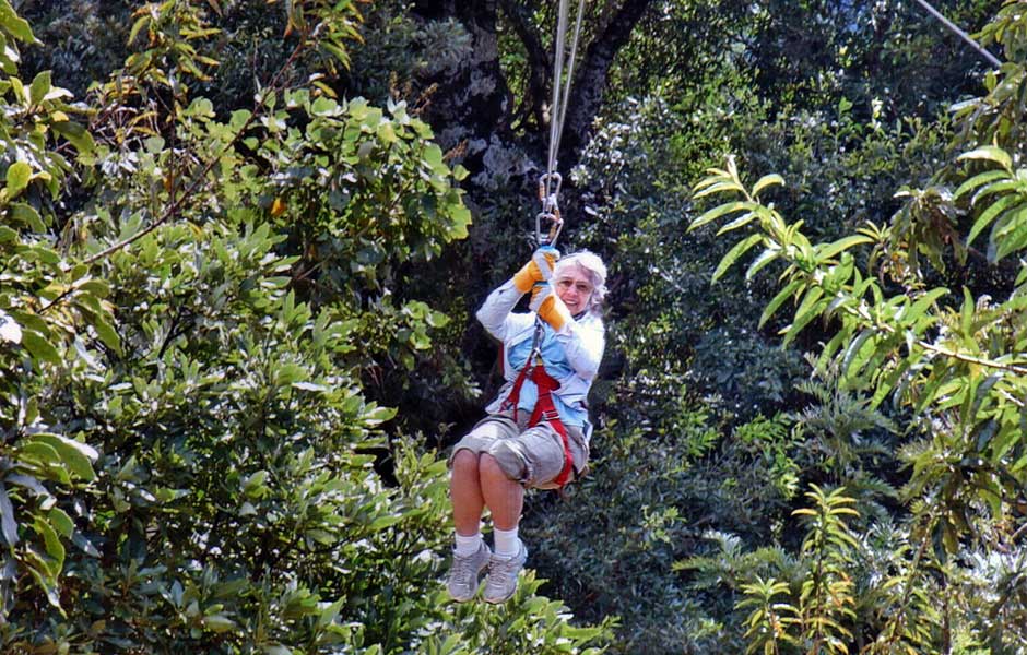 What we weren’t prepared for was how cold it would be! At the port the temperature, even at 8 am, was 95 degrees; we took rain jackets as a precaution, but even when we reached the plantation (a little under 5000 feet in elevation) and found it only slightly windy and cool, we weren’t terribly concerned with warmth. We should have been, along with the rest of our little group (8 people; the rest of the people on our bus of 32 were going to the coffee tour at the same location) as only one person took a sweat shirt up to the zip line with her. The rest of us left our jackets on the bus; it's difficult to manage the zipline's equipment and anything extra to carry and extra clothing seemed, at that point, one more thing to manage. So we were pretty cold! The wind was really blowing up in the trees; standing on those platforms waiting our turns was a chilly process and no one was shivering from nervousness; it was the cold! Wear something warm when you go! But this was a really nice zip line experience; the tour operators were excellent and the travel between the stations was varied in length and steepness so we had a nice variety of runs. A very nice sack lunch (large roast beef sandwich, chips, cookies, boxed fruit drink) awaited us at the end, with a lovely patio where we could have enjoyed it, but it was just too cold, so we all opted to climb back onto our vehicle, lunches in hand, and return to the base where we could find a warmer (but still chilly!) table outside on the restaurant patio, with access to the bus to get our jackets. We saw those who had opted for horseback riding go past, trying to keep their horses from nibbling at the vegetation along the path, and those from our own tour who had visited the coffee tour seemed to have enjoyed their visit as well.